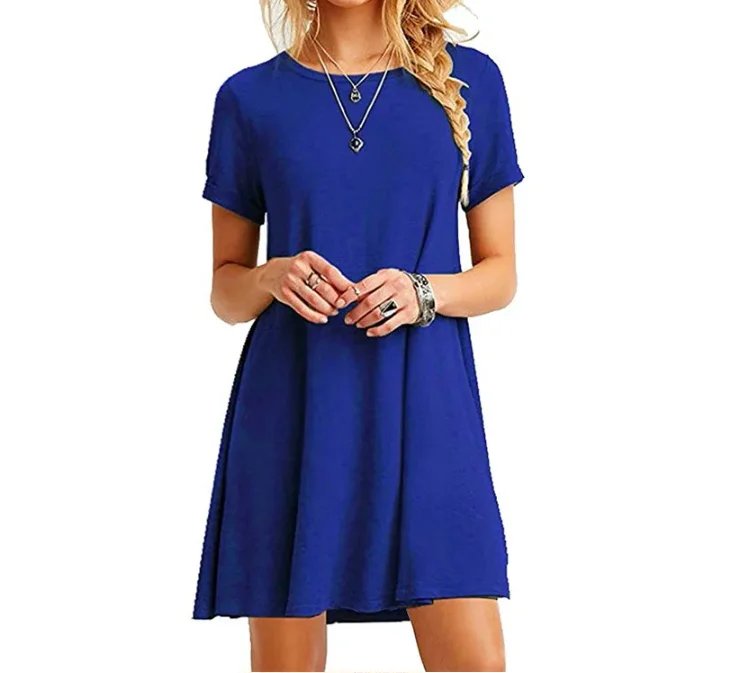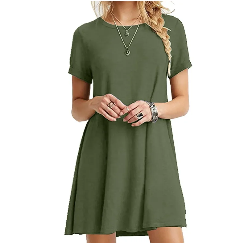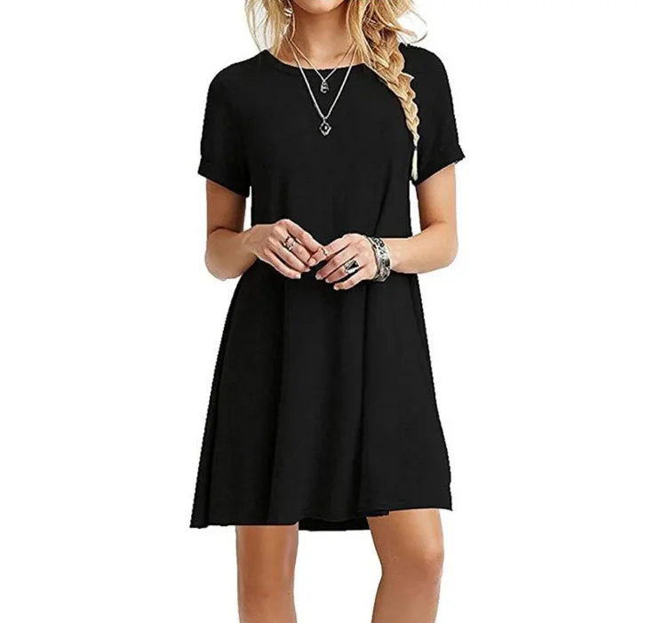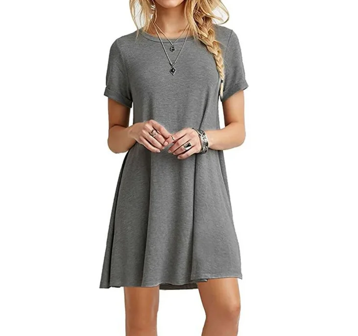Women Casual Short Sleeve T Shirt Dress Vintage O Neck Print Loose Mini Dress Elegant Simple Mini Dress Streetwear Sundress