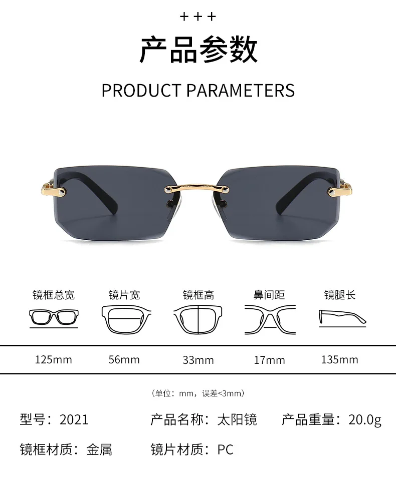 Rimless Sunglasses Rectangle Fashion Popular Women Men Shades Small Square Sun Glasses For Female Male Summer Traveling Oculos